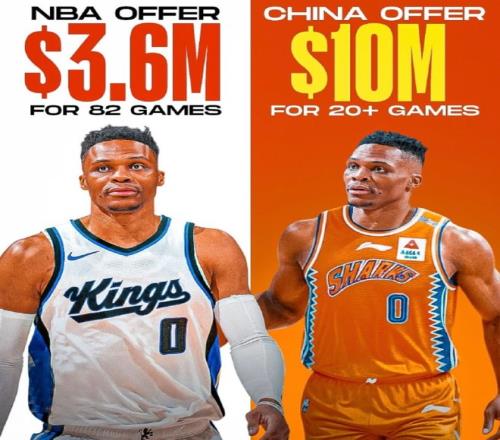 媒体人半神半卡特表示:美国自媒体关于威少的传言编得太夸张了,中国报价半赛季1000万美元?怕是前些年CBA投入最夸张的时候都不可能,何况是如今的CBA。