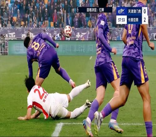 下半场回来,天津津门虎在后防线做出人员调整,同时将谢维军推到锋线,进攻端屡屡创造威胁。王禹防守中,直接飞铲哈达斯,裁判经过视频回放,直接出示红牌罚下!虽然长春亚泰比分领先,但是最后半个小时要面临少打一人的不利局面。