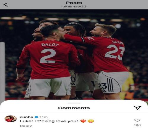 本场比赛曼联拿下三分,这是阿莫林执教以来首次取得英超三连胜,另外,今夏的新援库尼亚终于斩获了自己的红魔生涯处子球,他在卢克-肖的社媒评论区留言:“卢克!我是真xxx爱你!❤️‍”