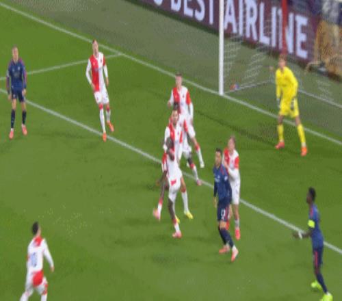 第66分钟,拉亚出球,被对方球员铲抢挡了一下
