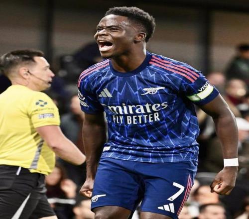 第32分钟,场上僵局被打破:普罗沃德禁区内手球送点,萨卡主罚命中,阿森纳1-0领先,萨卡成为阿森纳欧冠改制后首位连续四场客场破门的球员。