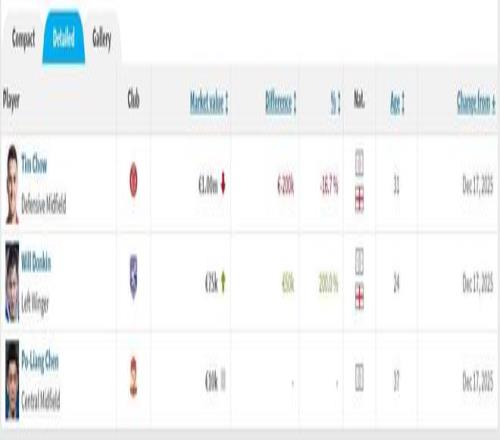 北京时间12月17日,转会市场网公布了中超联赛球员的最新身价,在港台球员中,效力成都蓉城的周定洋以100万欧元身价居首。
