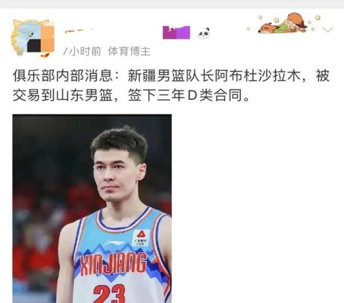 这两天网上突然传出新疆男篮队长休赛期将要离队的绯闻消息,有个别自媒体人先是说,上赛季的MVP阿布都沙拉木将会在休赛期离队,随后有媒体人发文,俱乐部内部消息:新疆男篮队长阿布杜沙拉木,被交易到山东男篮,签下三年D类合同。