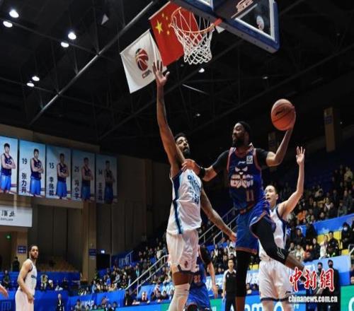 四川男篮外援庞兹(蓝衣)此役得到全队最高的27分9助攻,在关键时刻帮助球队追分。记者 王磊 摄