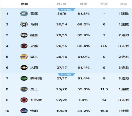 今天比赛开启前,西部局势可谓一言难尽