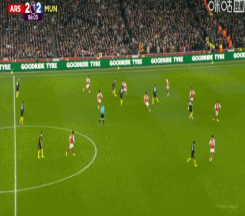 第81分钟,萨卡传中,皮球砸到哲凯赖什肩膀高出横梁
