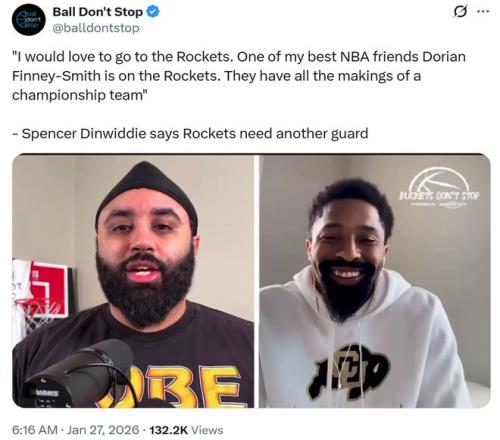 火箭一数据联盟第一!丁威迪毛遂自荐:他们具备争冠实力我想加入