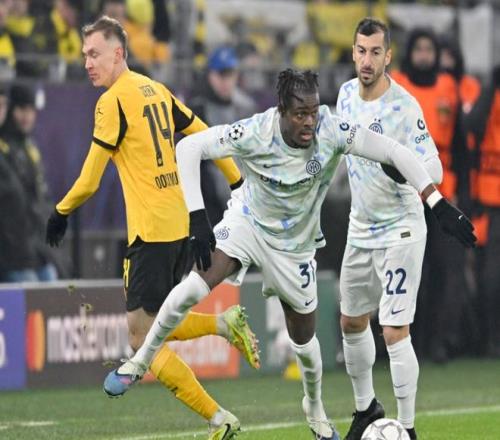 欧冠联赛阶段第8轮的比赛展开争夺,国际米兰做客挑战多特蒙德。国际米兰在联赛取得17胜1平4负的成绩,高居榜首,领先身后的AC米兰5分,是夺冠最大热门。在欧冠赛场,国际米兰的成绩就比较一般了,前7场小组赛4胜3负。如今迎来最后一场欧冠小组赛。国际米兰面对的是德甲劲旅多特蒙德。结果,国际米兰拿下比赛,最终排名第10,只能踢附加赛。
