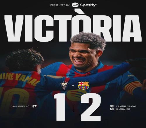 当莫雷诺在第87分钟高高跃起,那记势大力沉的头球砸进网窝时,卡洛斯·贝尔蒙特球场瞬间爆发的声浪,足以把巴萨球员的魂吓飞。